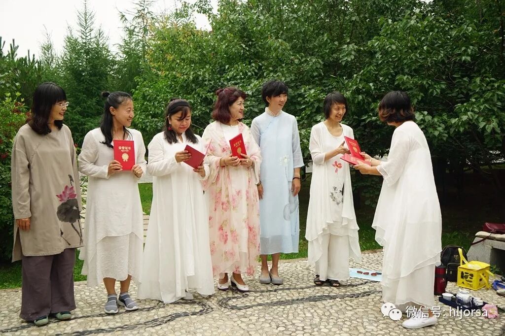 经过6次公益课程培训,首期学员对于中国茶文化发展史有了深入了解,对各种茶类的品鉴、茶艺展示技巧等都基本掌握。大家穿着具有民族特色的禅茶服饰、带着各自的茶具席地而坐,省科学院分会陈薇学长还特意带来从云南空运而至的红双喜百合花为大家的茶席增添色彩,学长们娴熟地按照温壶、洗茶、泡茶程序进行独立茶艺展示,又将泡好的茶敬奉给老师和新学员品鉴。品茶过后,全体老学员躬身起立,向辛勤付出的茶艺老师、禅舞老师行感恩礼,茶友会负责人、(E)MBA分会副会长王雪峰向学业有成的各位学长颁发荣誉证书。