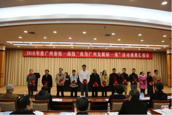 2019年1月3日,广州市统一战线召开“我为广州发展献一策”活动成果汇报会。市委常委、统战部部长卢一先出席会议并讲话。全市统一战线有关单位以及市直有关单位、各区委统战部、有关大学党委统战部相关负责人和机关干部等共270余人参加会议。会议通报了获得2018年度广州市统一战线“我为广州发展献一策”活动优秀成果奖和优秀组织奖名单,并对获奖单位和个人分别颁发奖牌和荣誉证书。