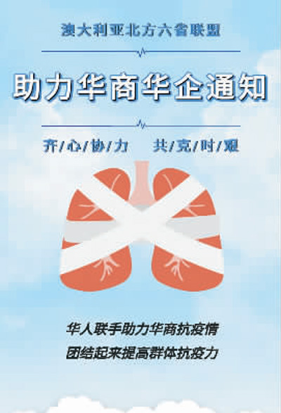 澳大利亚中国北方六省联盟发起的“助力华商”活动海报。