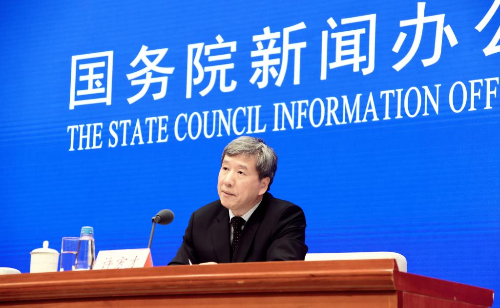 1月25日,财政部副部长许宏才在国新办新闻发布会上介绍2021年财政收支情况。新华社记者 潘旭 摄