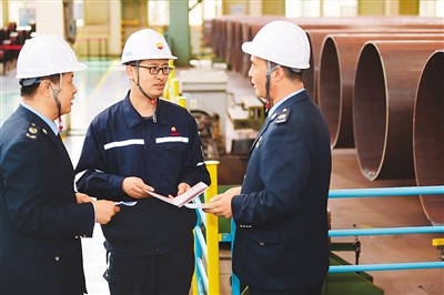 国家税务总局青县税务局开展“一对一”精准服务,落实最新税惠政策,助力企业高质量发展。图为该局工作人员在一家钢管生产企业向生产管理人员了解生产经营情况,解决企业涉税诉求。傅新春摄(人民视觉)