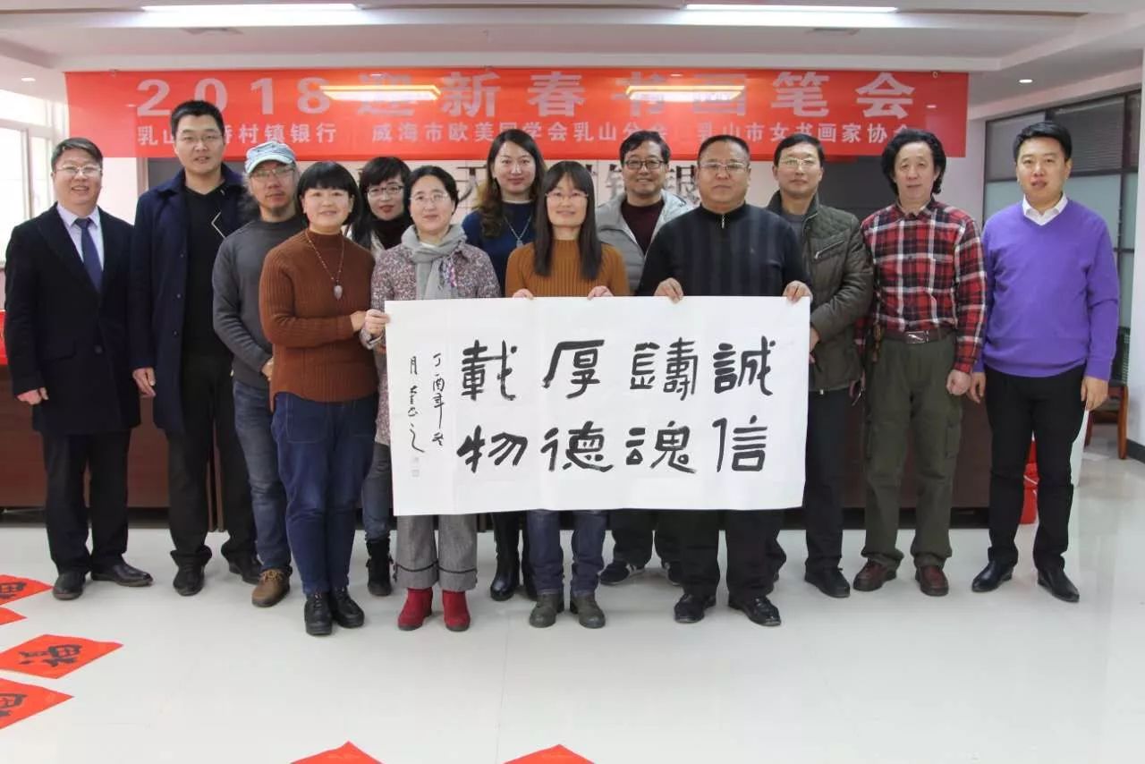 2018年1月21日上午,乳山天骄村镇银行会议室热闹非凡,由威海市欧美同学会乳山分会、乳山天骄村镇银行和乳山市女书画家协会共同组织的2018年迎新春书画笔会在这里如期举行。
